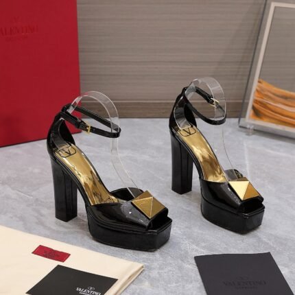 [SUPER VIP 1:1] VALENTINO GARAVANI OPEN TOE PUMP ONE STUD PLATFORM PATENT LEATHER BLACK ZW2S0EA3LAF 0NO