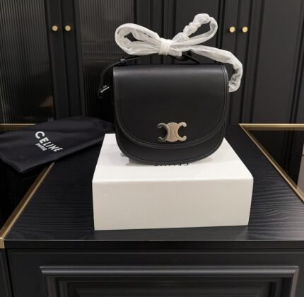 CELINE MEDIUM TRIOMPHE BELT IN TAURILLON LEATHER BLACK 25MM 45AK93A01 38NO
