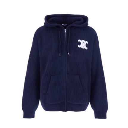 CELINE SWEATSHIRT JACKET WITH MAXI TRIOMPHE LOGO NAVY BLUE