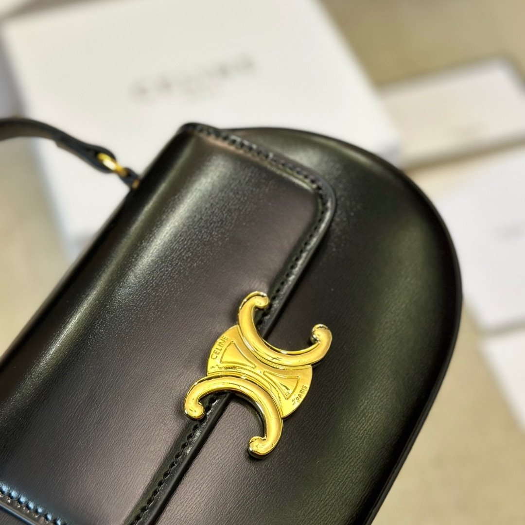 CELINE BESACE CLEA SQUARE FLAP BAG IN SHINY BLACK 20CM