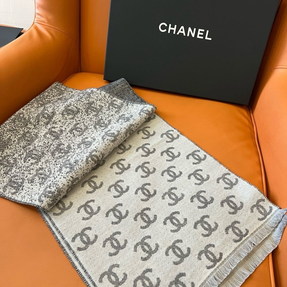 CHANEL 24B FULL CC SCARF GREY AND BLACK 180CM