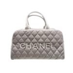 CHANEL BOWLING BAG QUILTED CANVAS BLACK 35CM