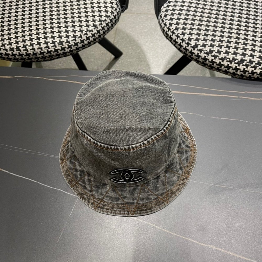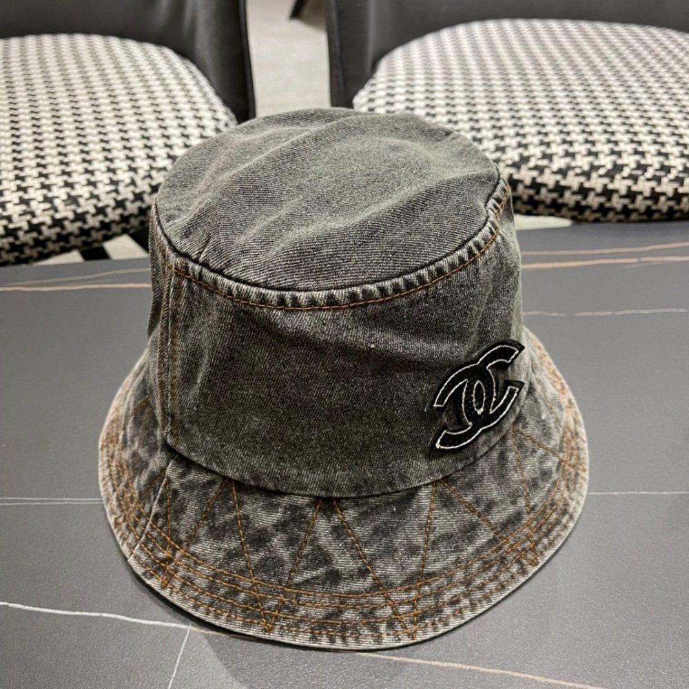 CHANEL CC DENIM BUCKET HAT BLACK