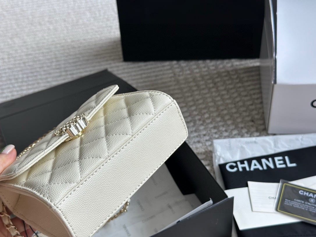 CHANEL CLUTCH BAG WITH CHAIN IN WHITE 15CM AP3237 B10307 10601