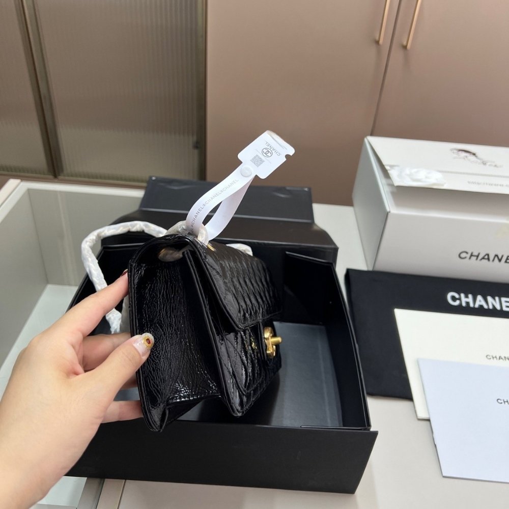 Be the first to review “CHANEL FLAP BAG GLOSSY AND GOLD PLATED METAL BLACK 26CM AS5694 B21434 94305” Cancel reply