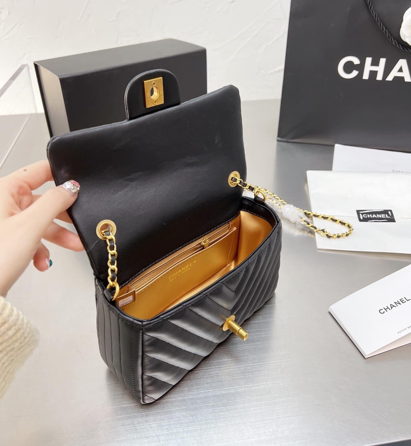 Be the first to review “CHANEL CHEVRON QUILTED MINI RECTANGULAR FLAP BLACK 19CM” Cancel reply
