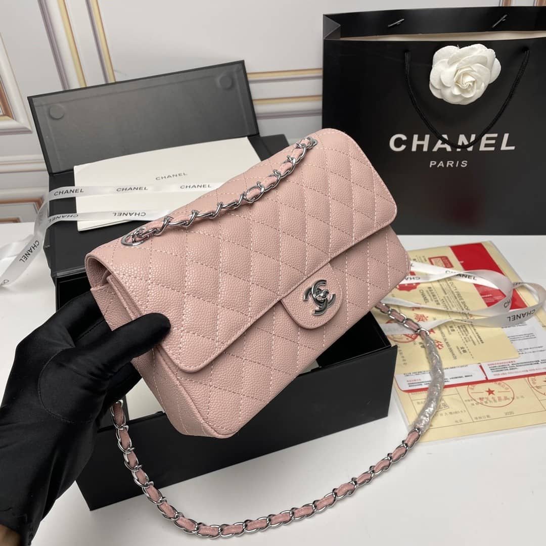 Be the first to review “CHANEL MEDIUM CLASSIC FLAP BAG SILVER HARDWARE PINK 25CM” Cancel reply