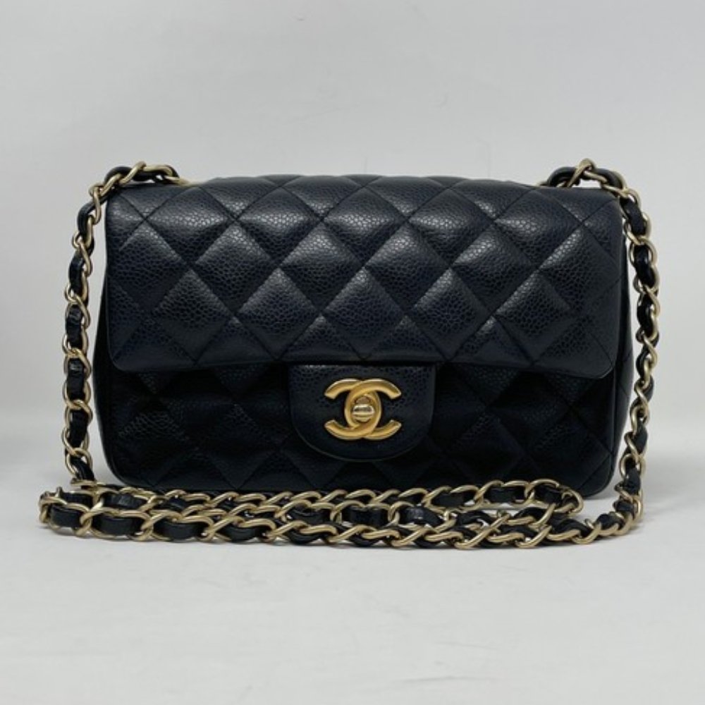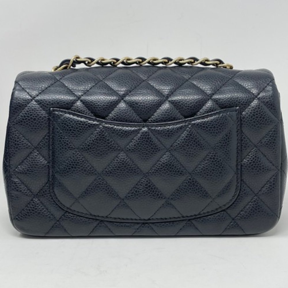 CHANEL MINI CLASSIC HANDBAG GOLD TONE METAL BLACK 20CM A69900 Y04059 94305