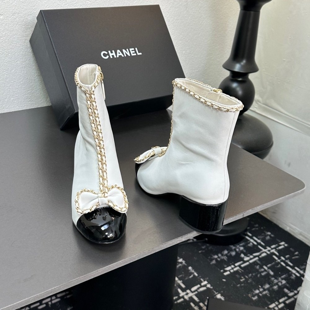 CHANEL RIBBON CHAIN BOOTS WHITE