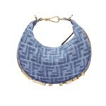 - Mini Hobo bag made of denim-effect, light blue fabric with an FF motif.
