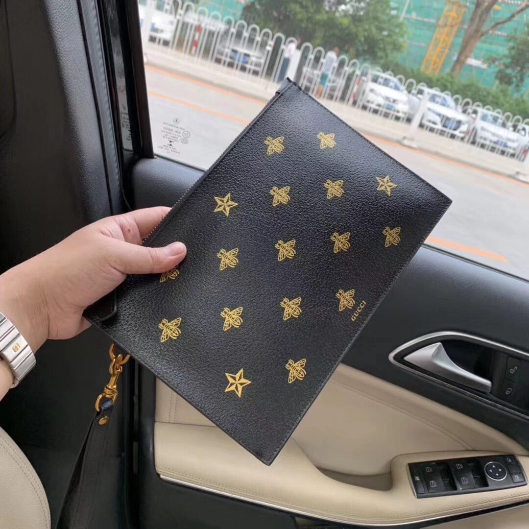 GUCCI BEE STAR LEATHER CLUTCH BLACK 28CM 495066 DJ2KT 8474