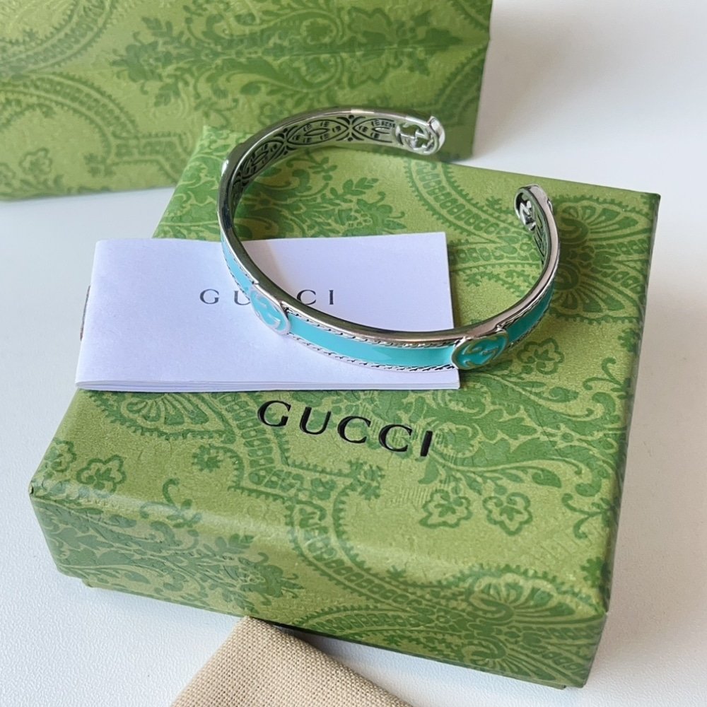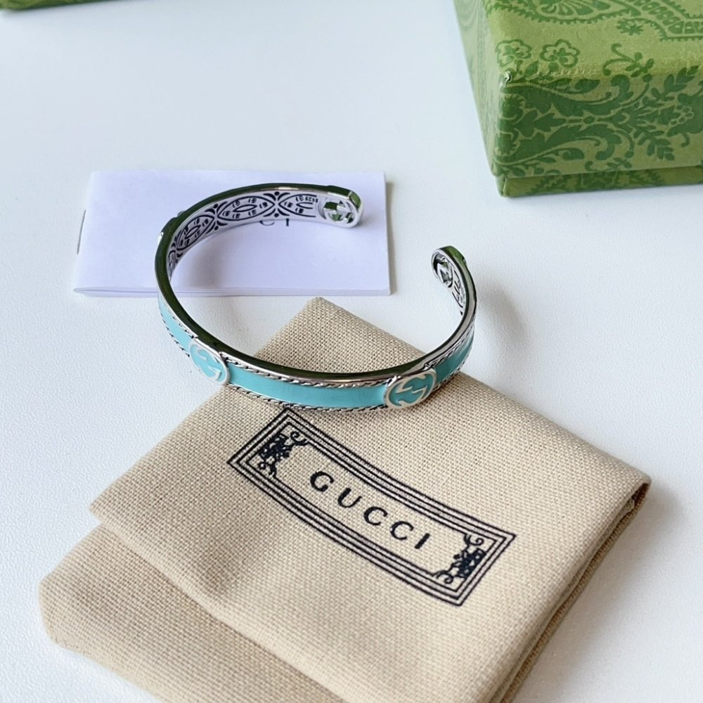 Be the first to review “GUCCI CUFF BRACELET INTERLOCKING GG STERLING SILVER TURQUOISE ENAMEL” Cancel reply