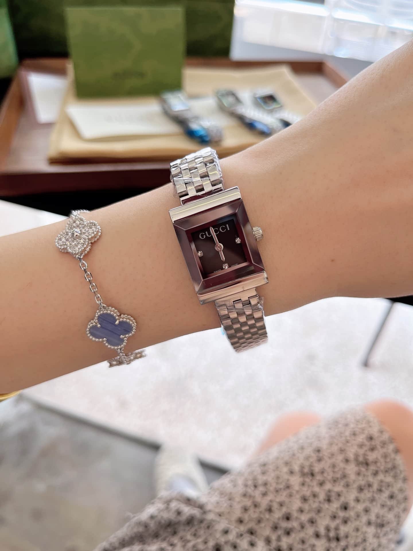 Be the first to review “GUCCI G FRAME BRACELET WATCH SQUARE SHAPE SILVER IN BLACK 20MM YA128507”