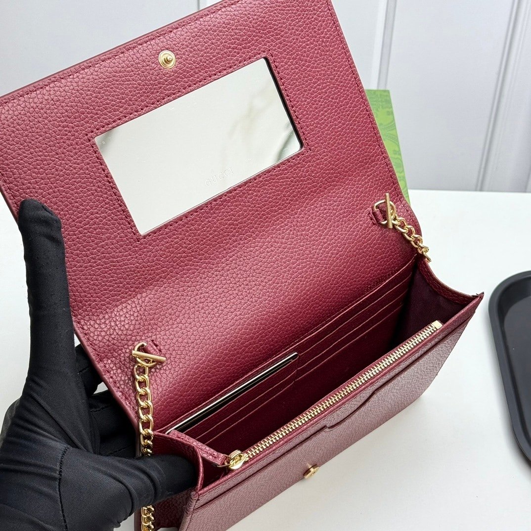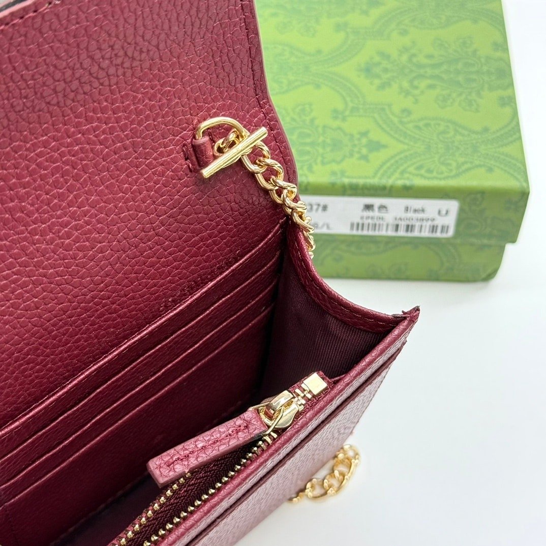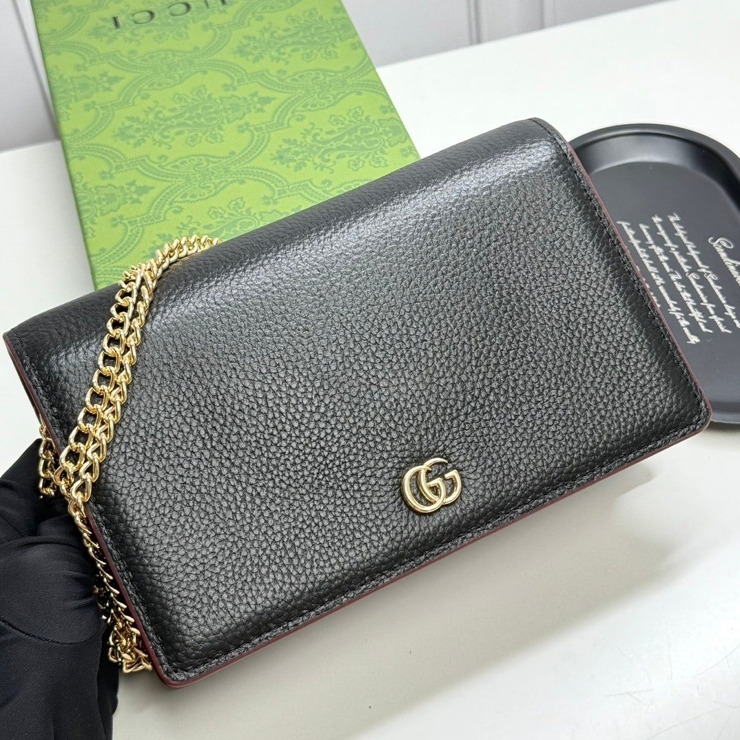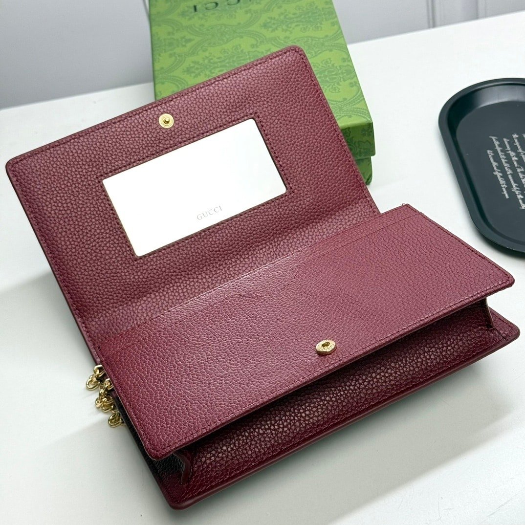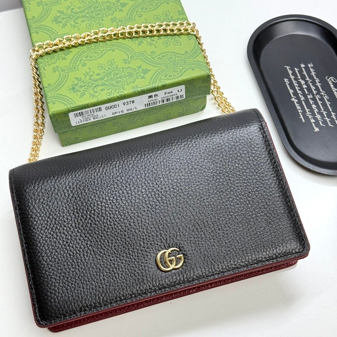 GUCCI GG MARMONT WALLET ON CHAIN BLACK AND RED LEATHER 20CM 497985 AAE5F 1062