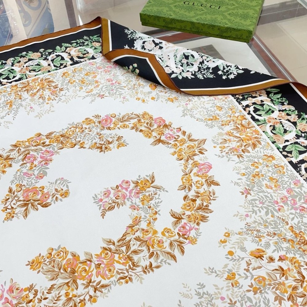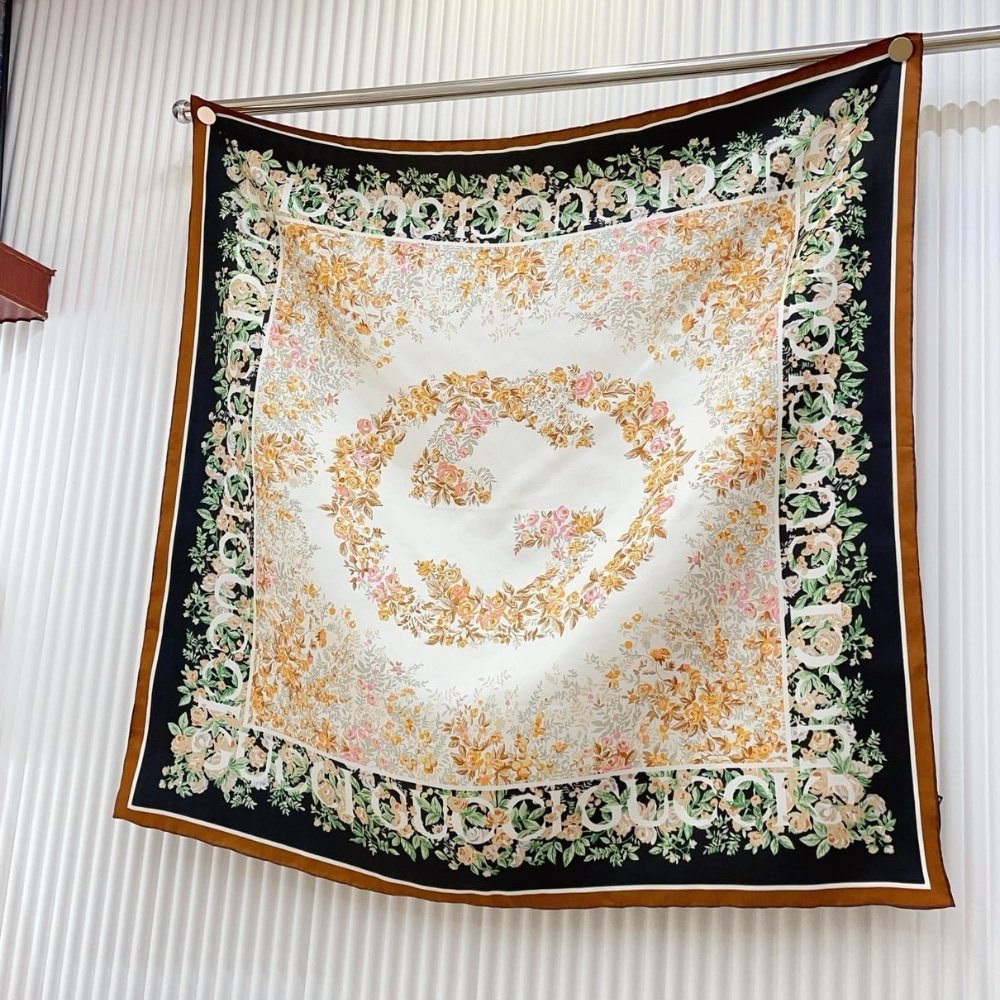 Be the first to review “GUCCI INTERLOCKING G FLORAL PRINT SILK CARRÉ BLACK AND BEIGE 783157 3G001 1079” Cancel reply