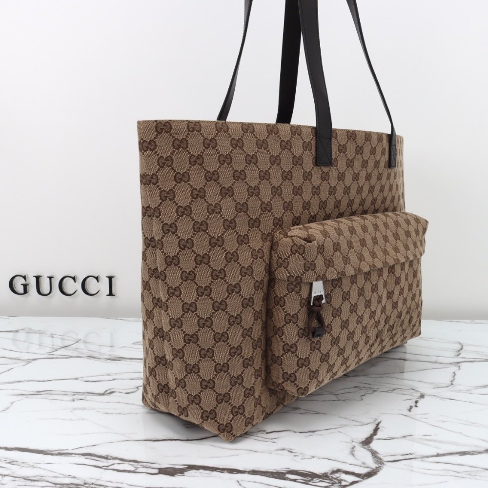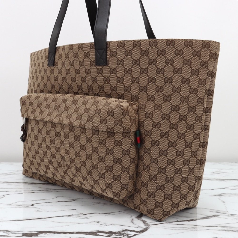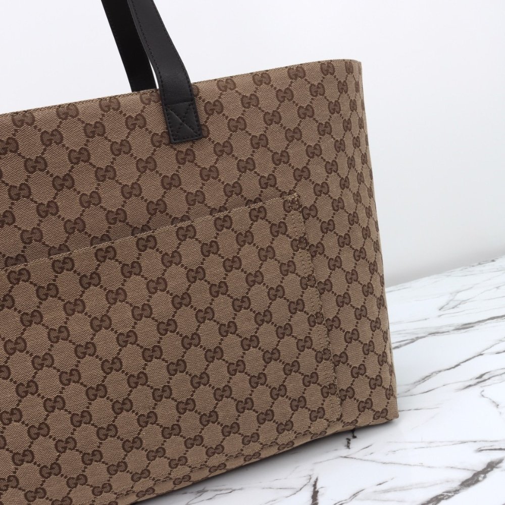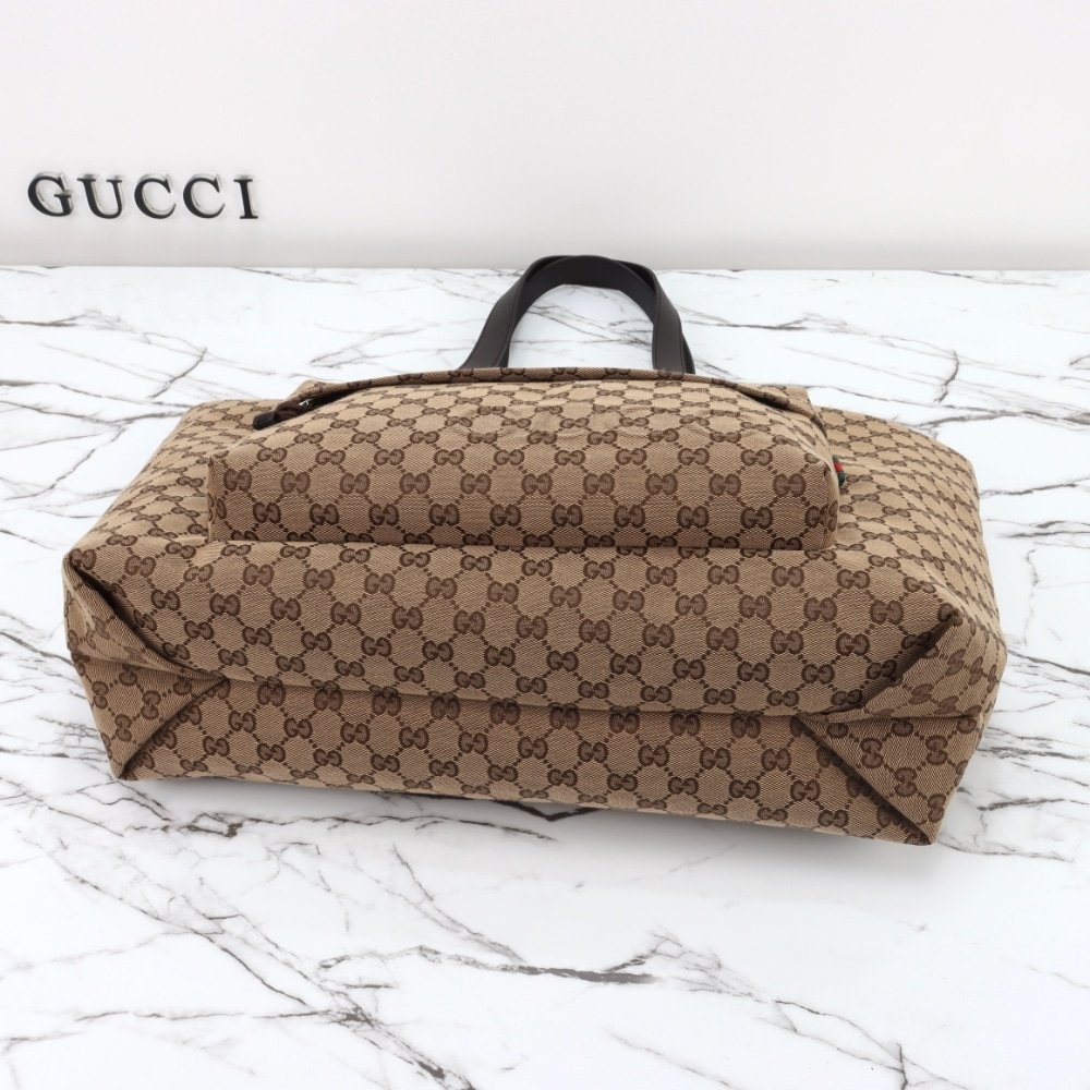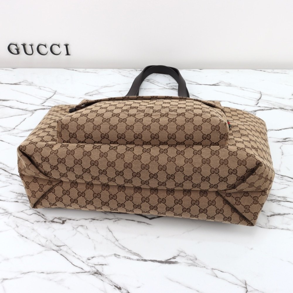 GUCCI LARGE GG TOTE BAG BEIGE AND EBONY ORIGINAL GG CANVAS 45CM 802166 FADUU 8657