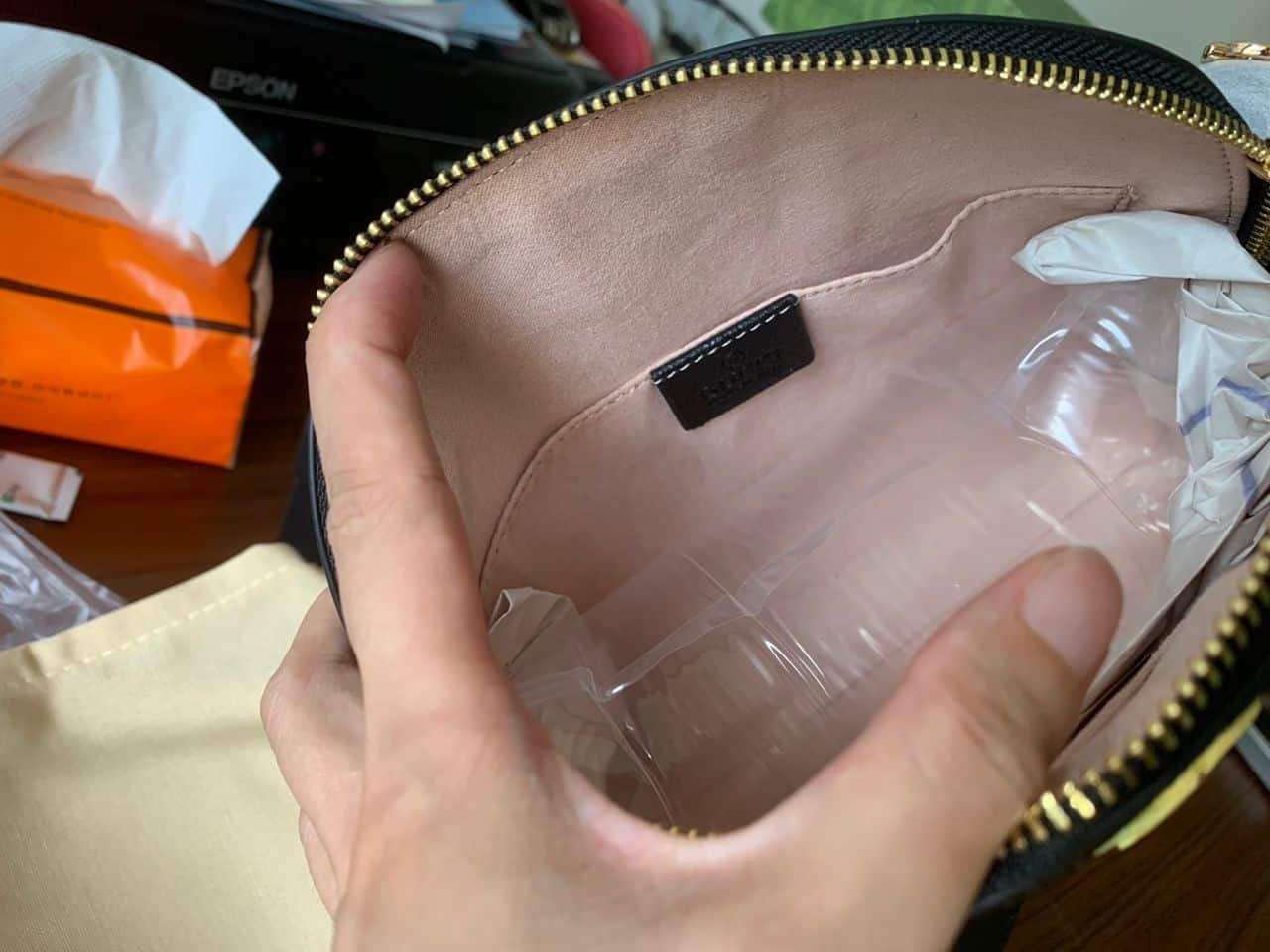 - Gold-toned hardware