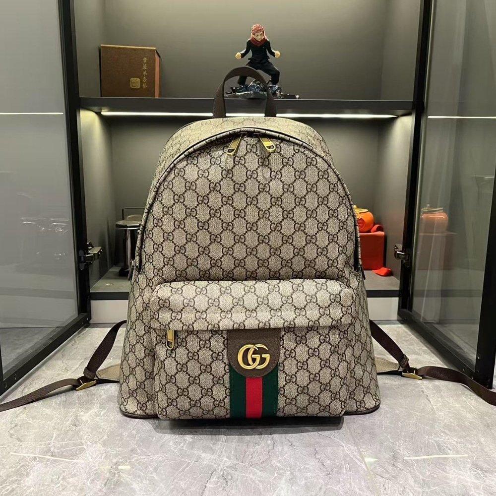 GUCCI OPHIDIA MEDIUM BACKPACK BEIGE AND DARK BROWN 41CM 834466 FAEOJ 9747