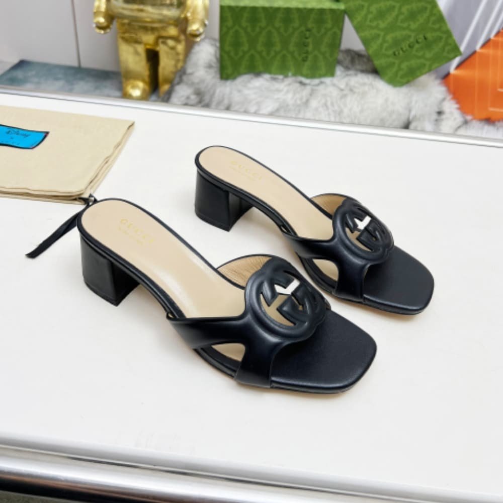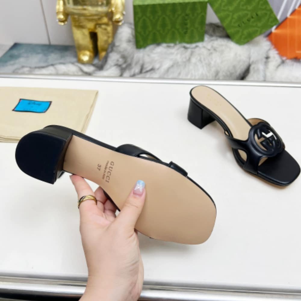 GUCCI WOMEN’S INTERLOCKING G SLIDE SANDAL BLACK 782413 AAAZG 1000