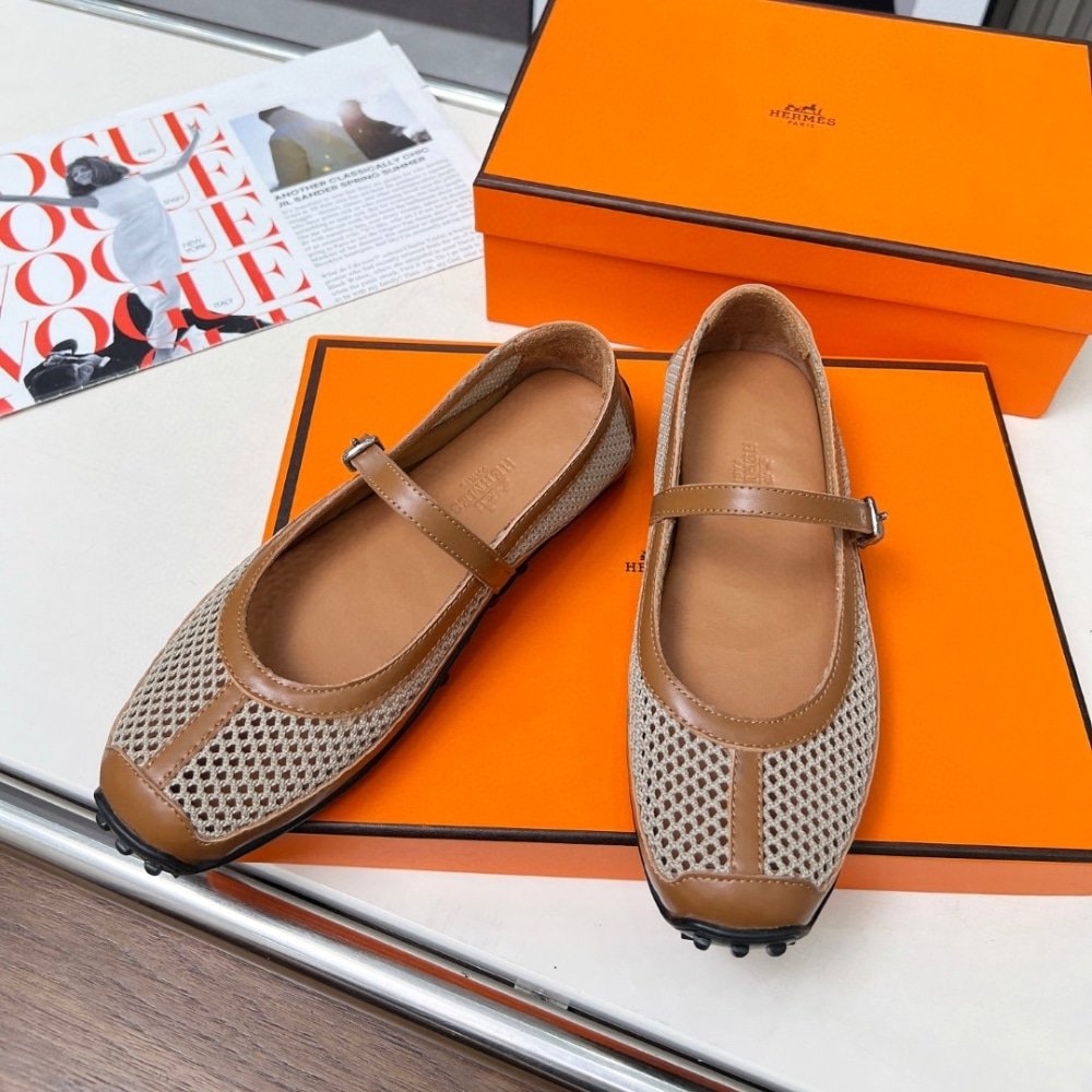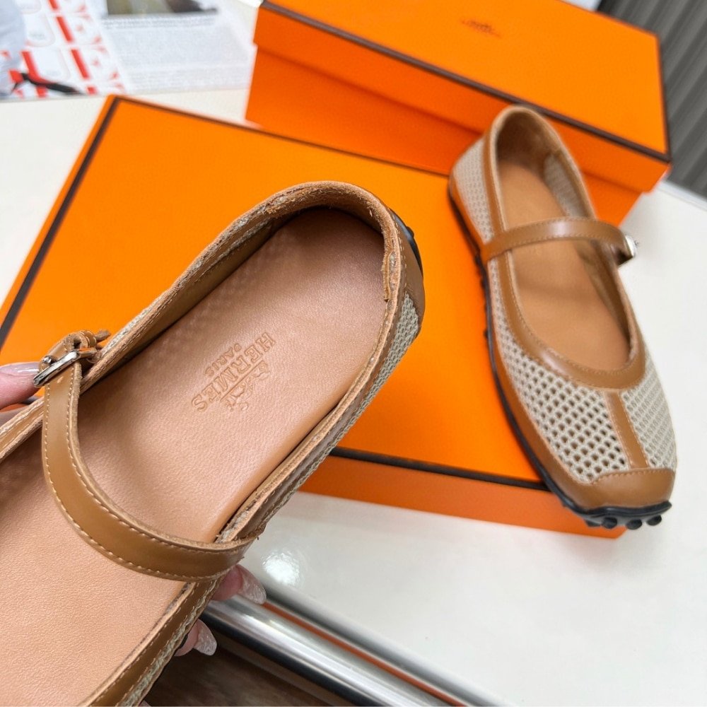 HERMES KICHU BALLET FLATS BEIGE LIN H251170Z 7K380