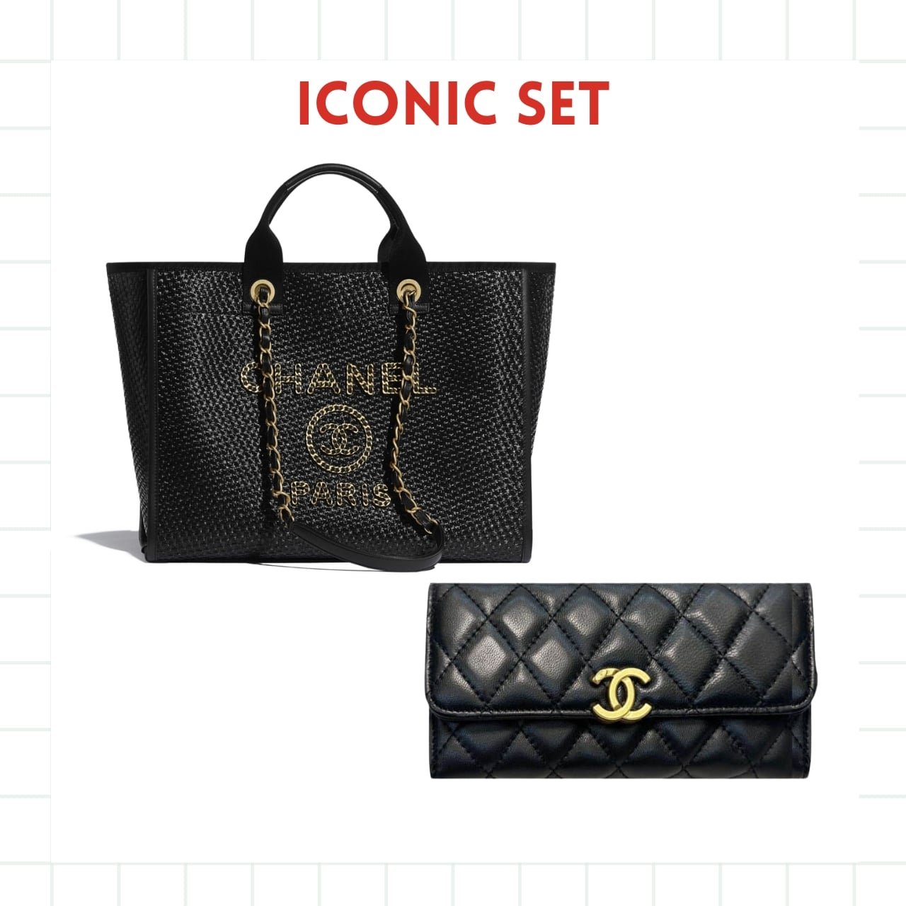 ICONIC SET: CHANEL DEAUVILLE LARGE SHOPPING BAG & LONG FLAP WALLET