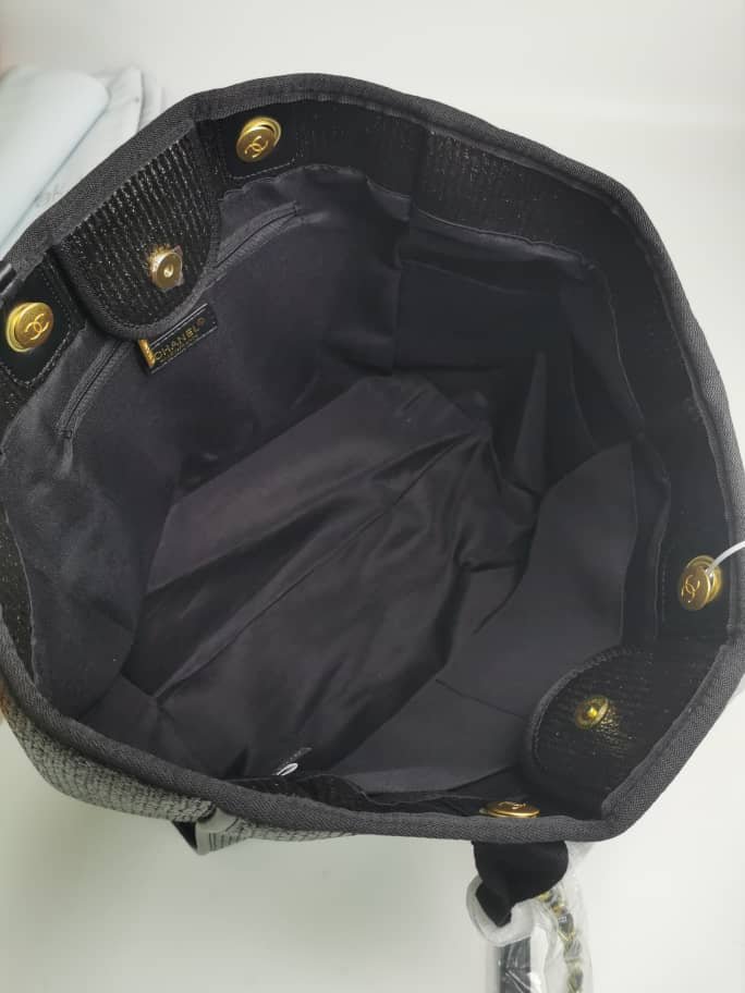 CHANEL DEAUVILLE LARGE SHOPPING BAG BLACK 39CM A66941 B05086 94305