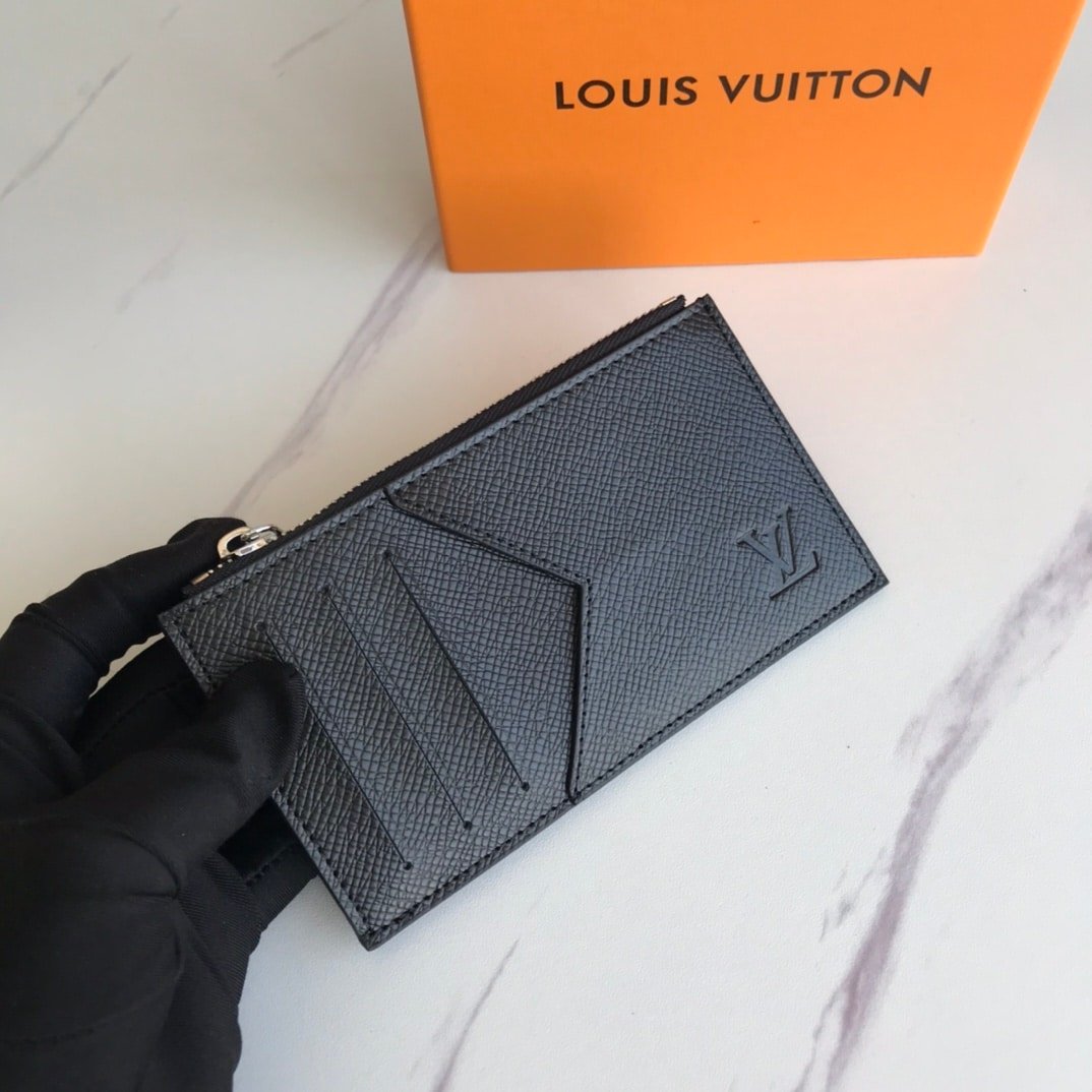 LOUIS VUITTON COIN CARD HOLDER TAIGA LEATHER BLACK 14.5CM M62914