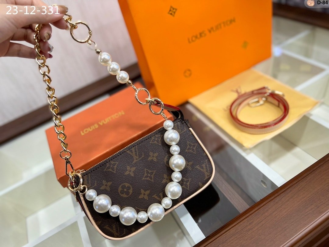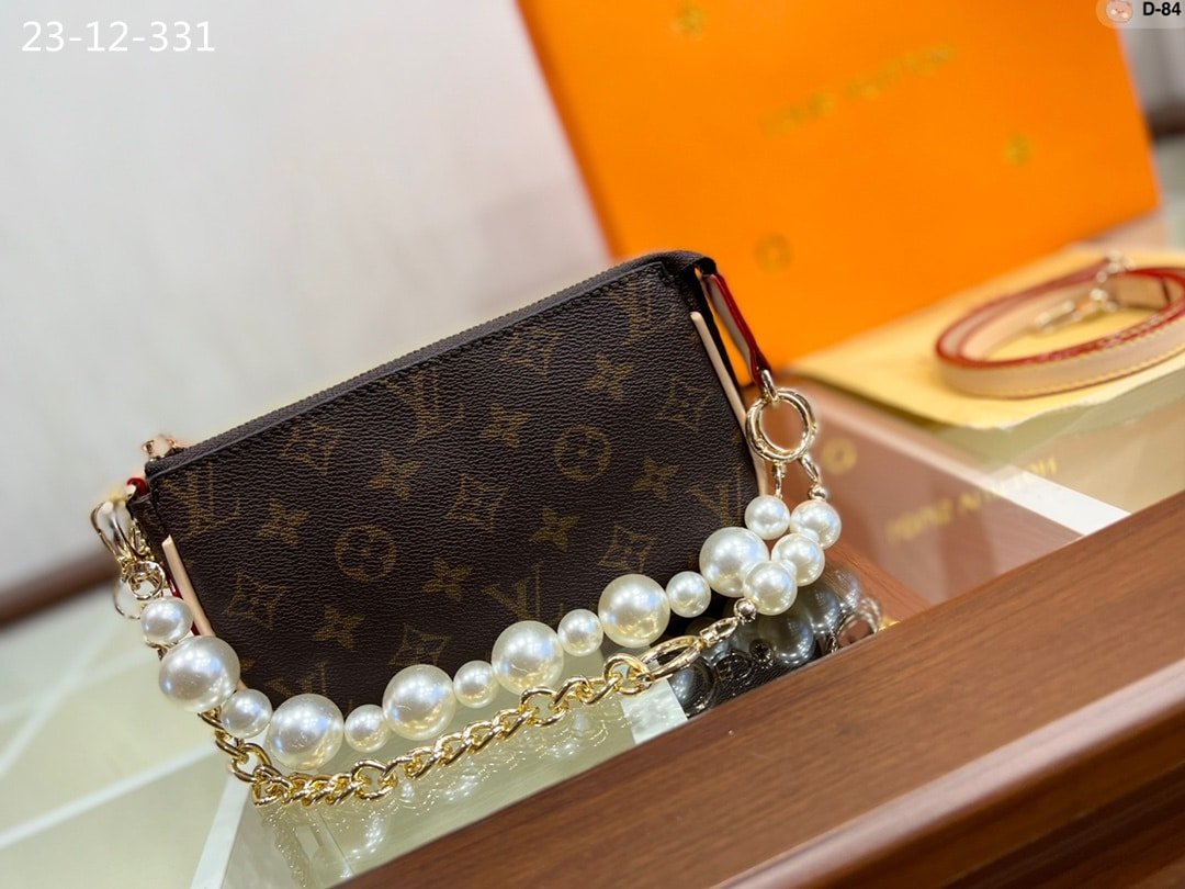 Be the first to review “LOUIS VUITTON POCHETTE ACCESSOIRES WITH PEARL CHAIN MONOGRAM BROWN 20CM” Cancel reply