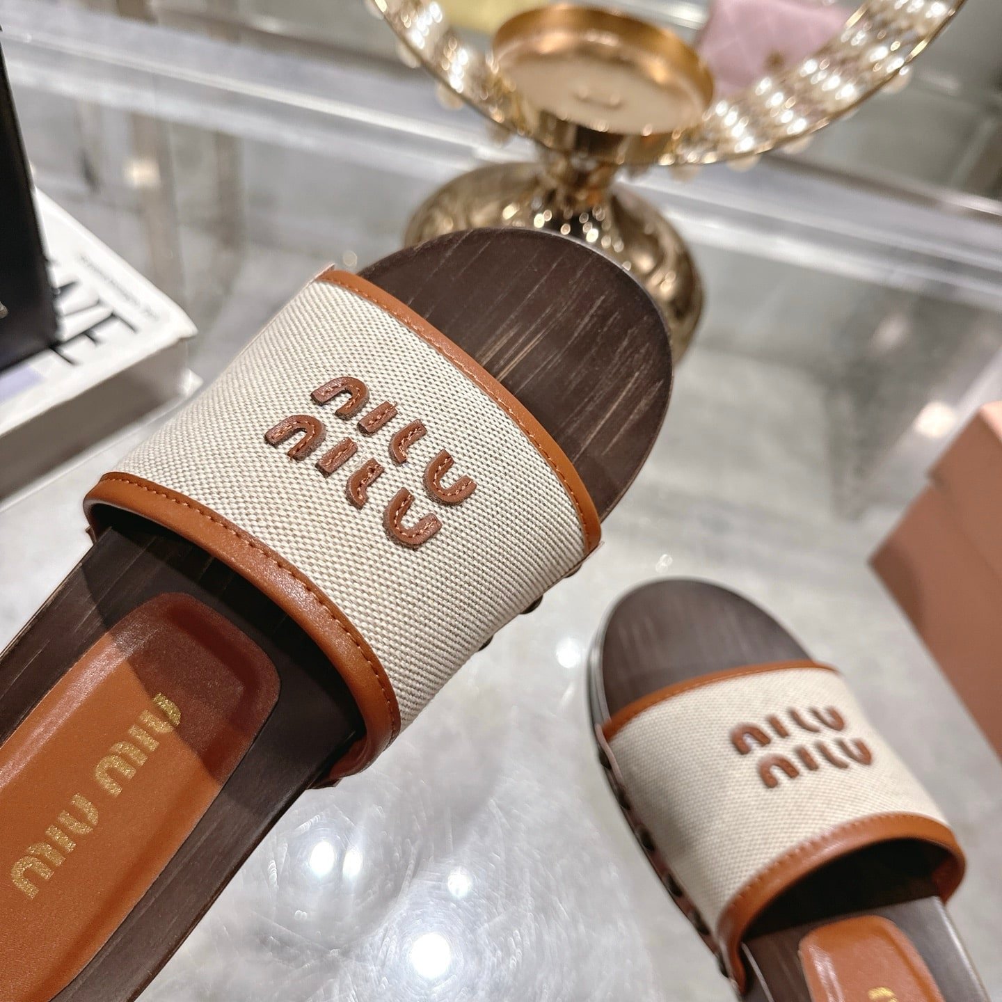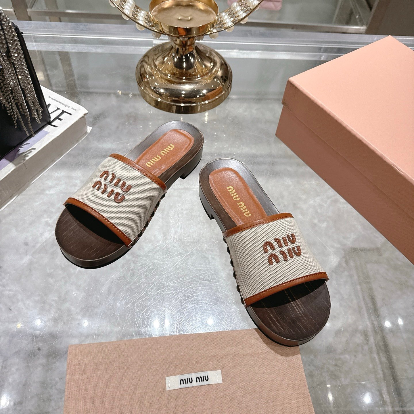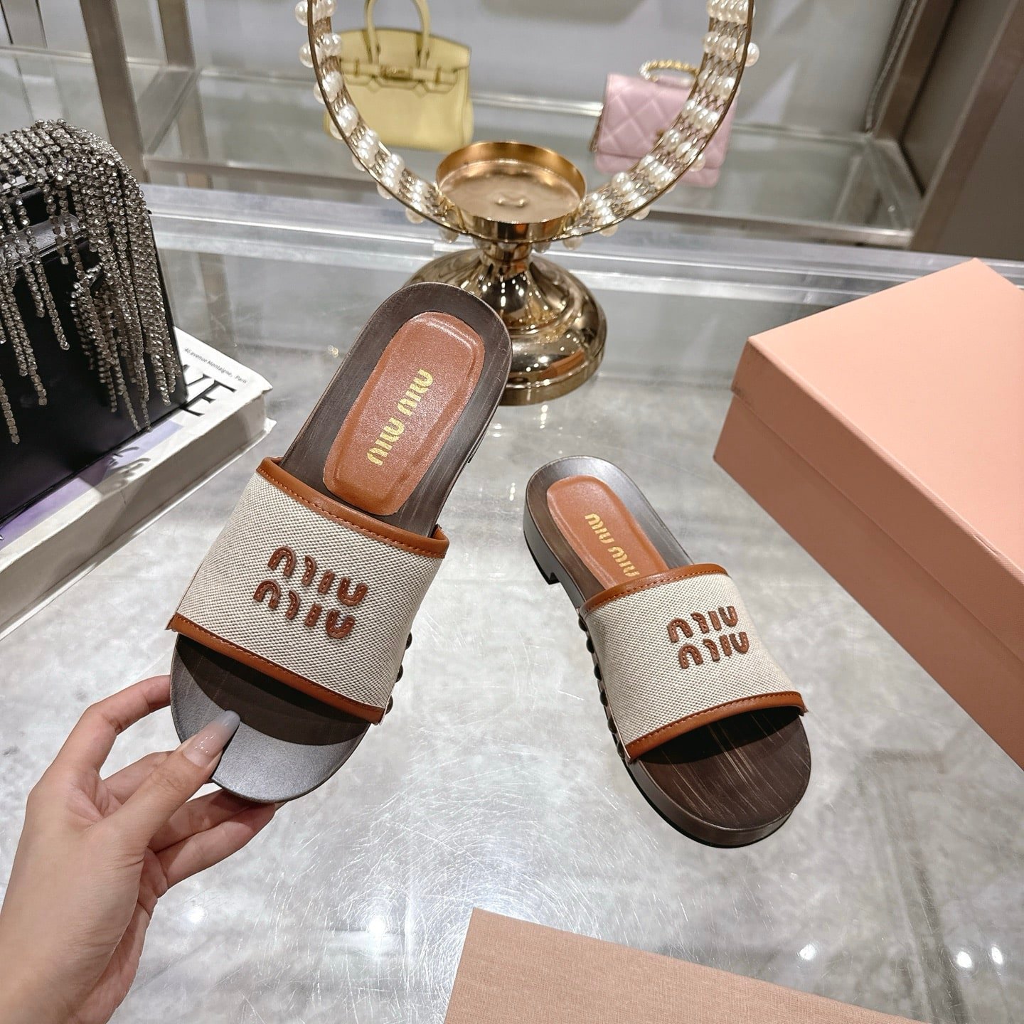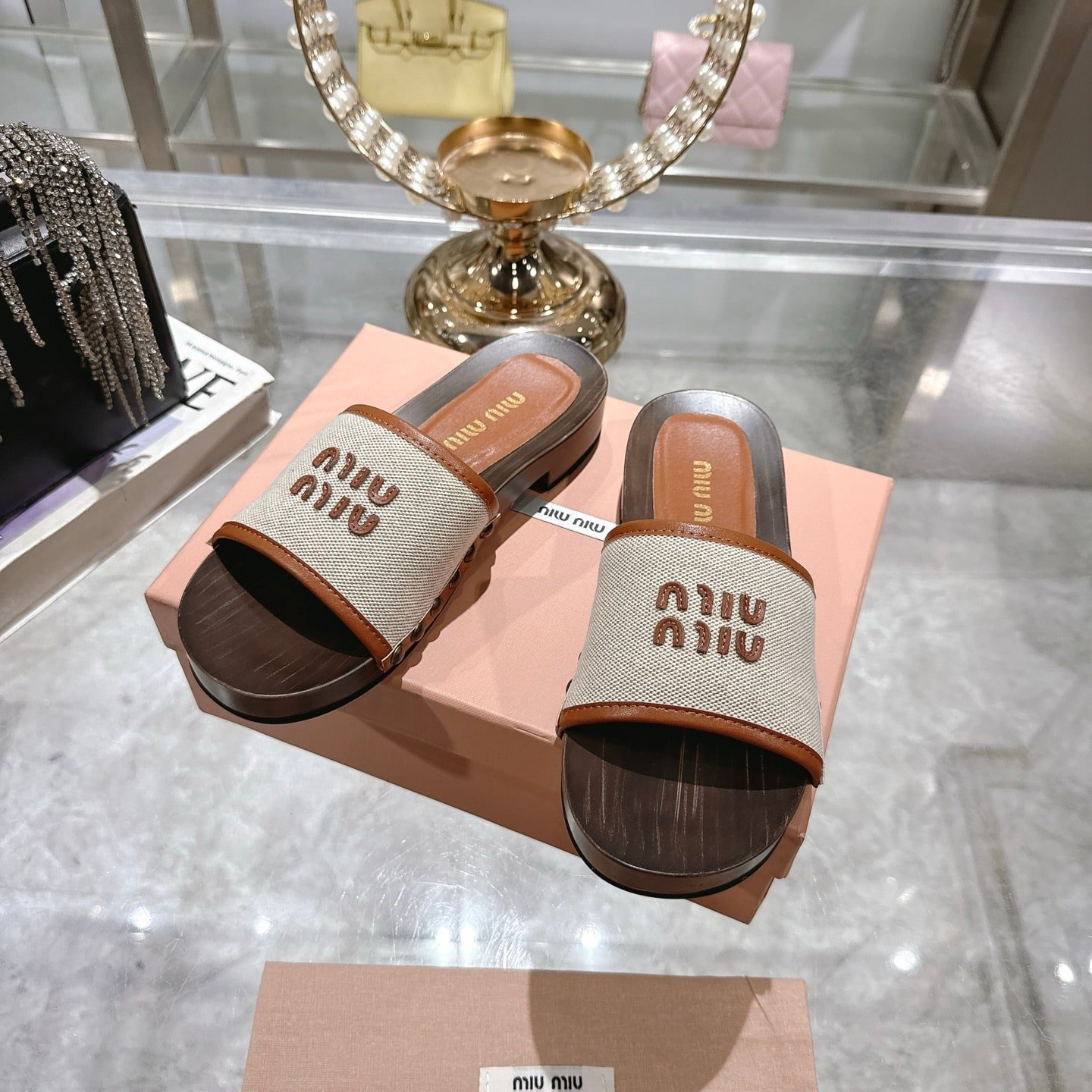 MIU MIU CANVAS AND LEATHER CLOGS BEIGE 5Z445E Q1D F062F F 030