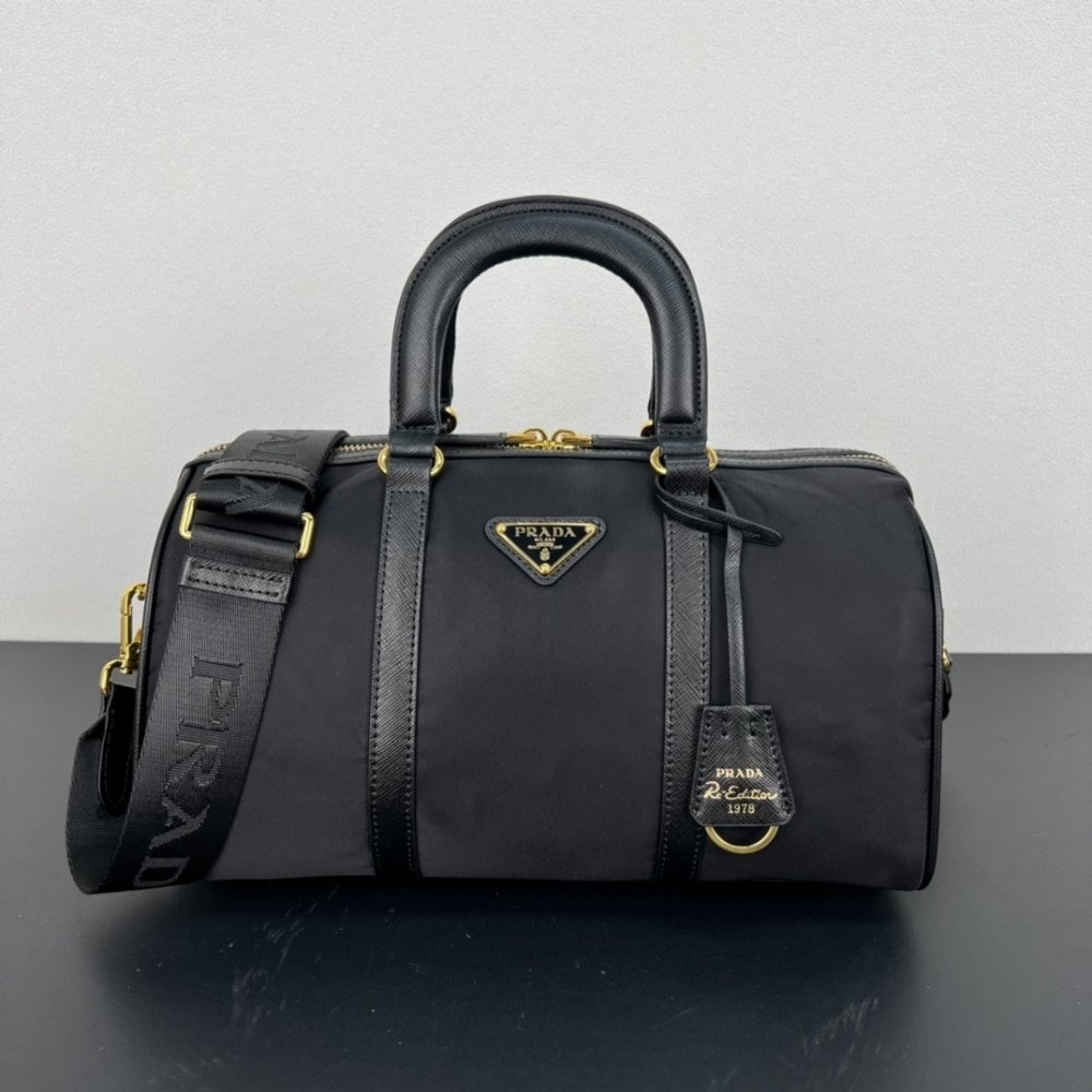PRADA RE EDITION 1978 RE NYLON X SAFFIANO MEDIUM TOP HANDLE BAG BLACK 31CM 1BB233 R064 F0002 V ZOM