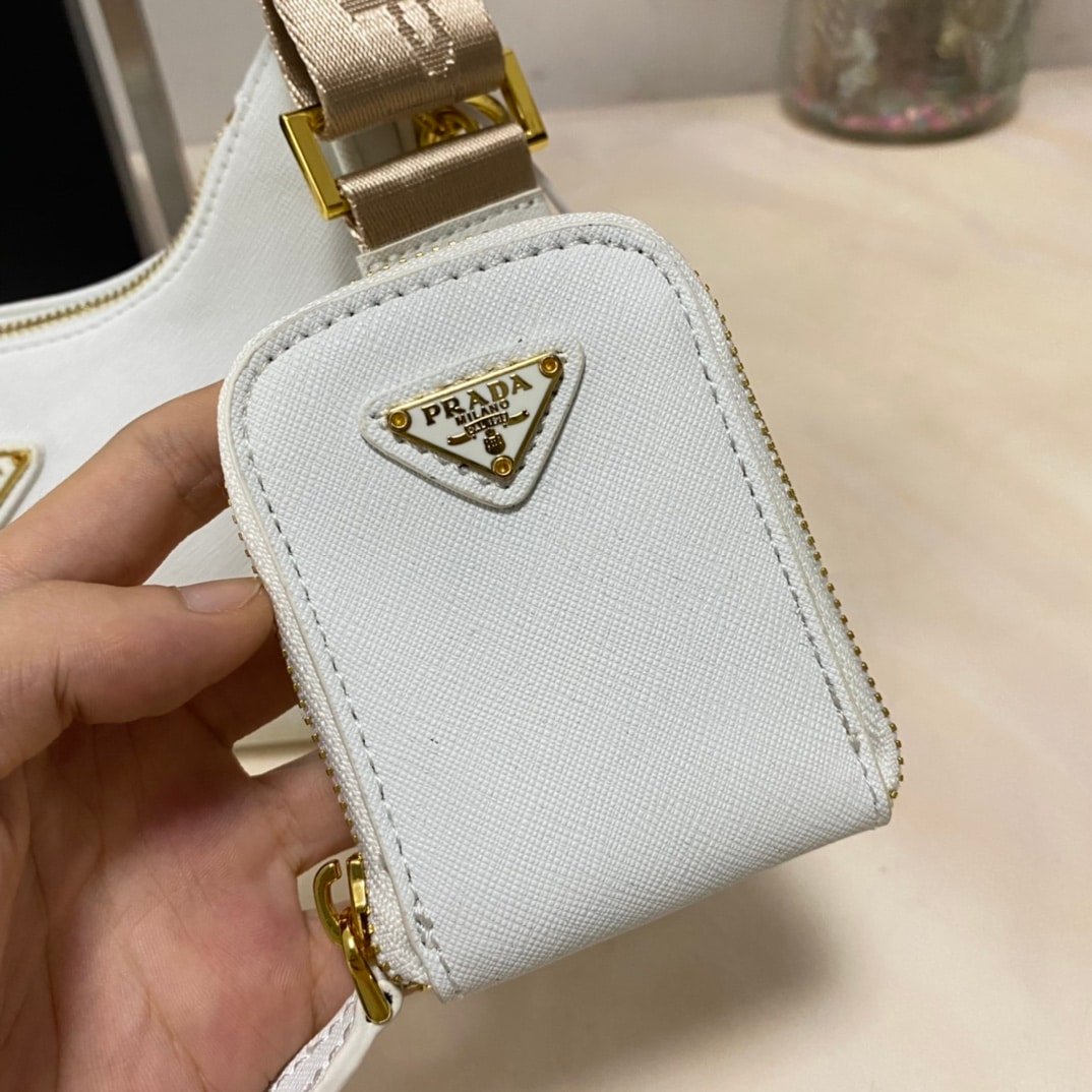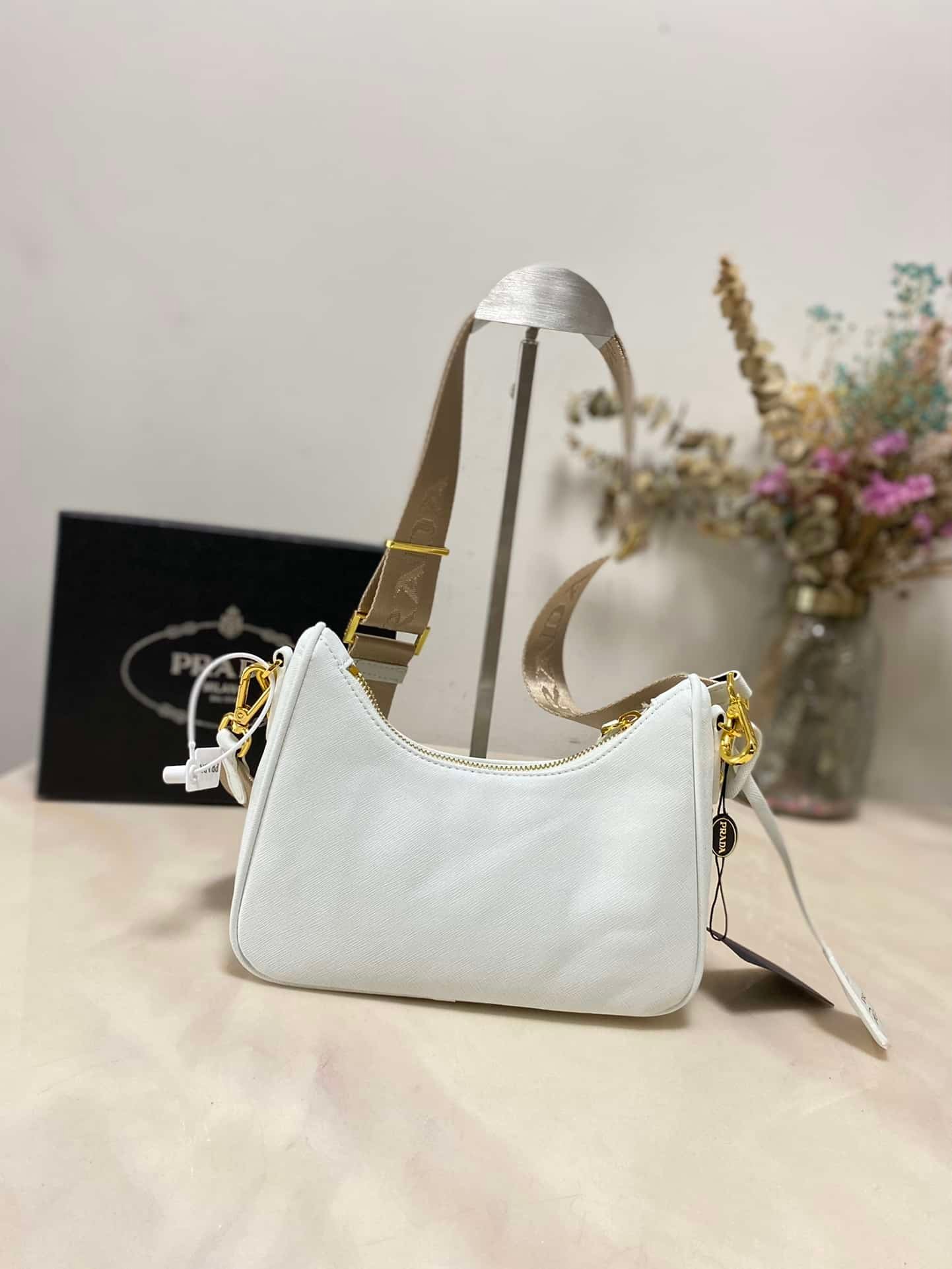 PRADA RE EDITION 2005 SAFFIANO LEATHER SHOULDER BAG WHITE 1BH204 NZVF02ENVV2M