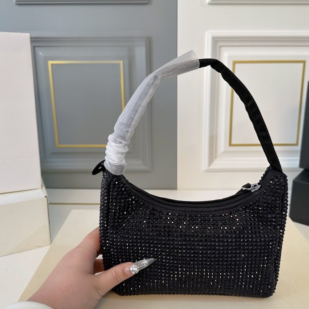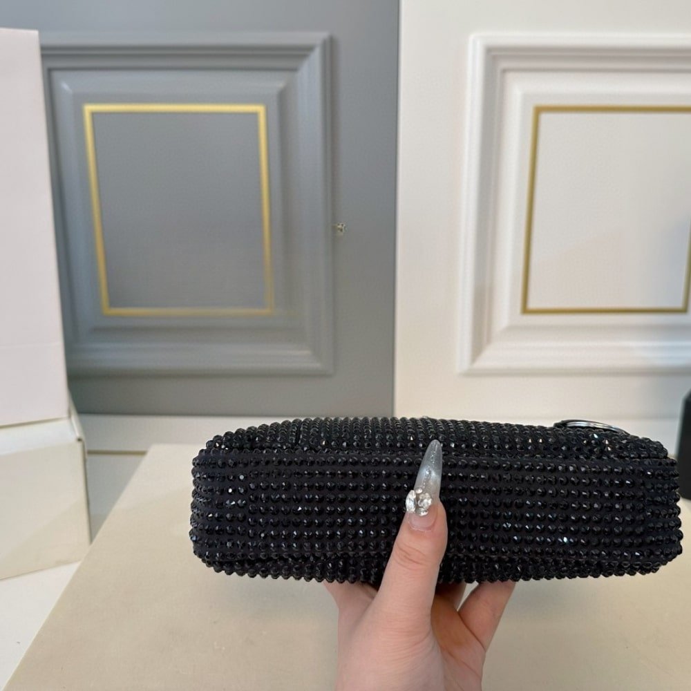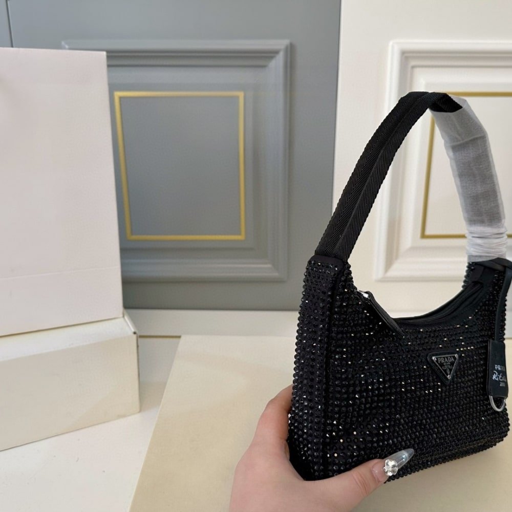 PRADA RE EDITION SATIN MINI BAG WITH CRYSTALS BLACK 21CM 1BC515 2AWL F0002 V OOO
