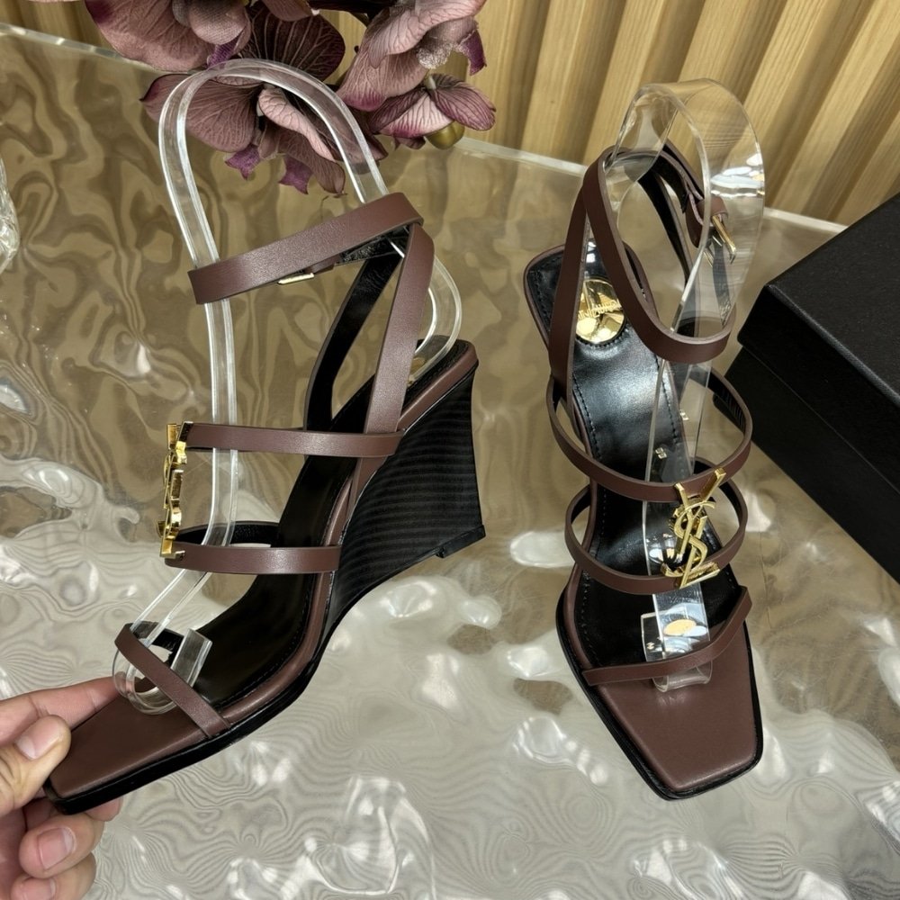 SAINT LAURENT CASSANDRA WEDGES IN SMOOTH LEATHER DARK BROWN 821090DWEDD2023