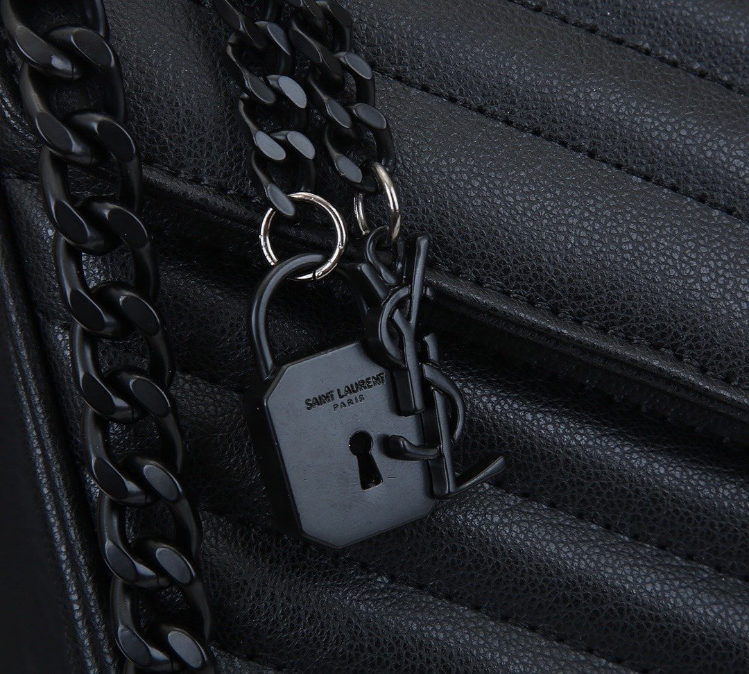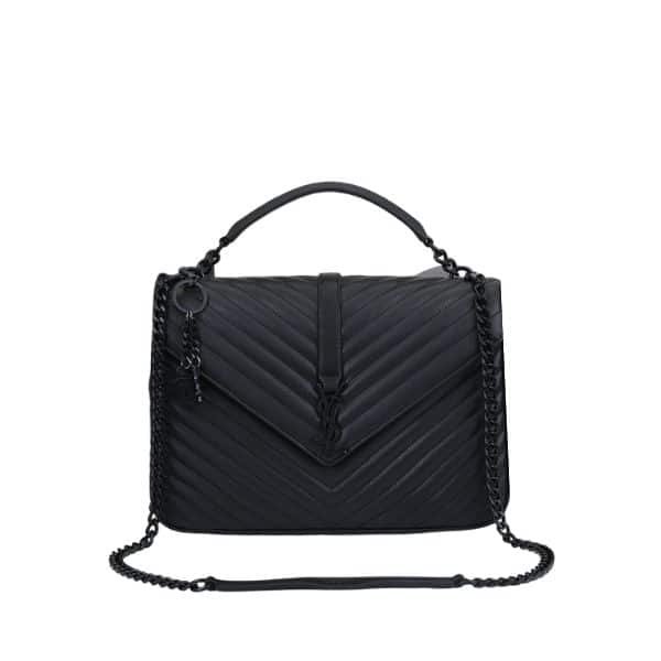 SAINT LAURENT COLLEGE LARGE CHAIN BAG BLACK TONE HARDWARE 32CM