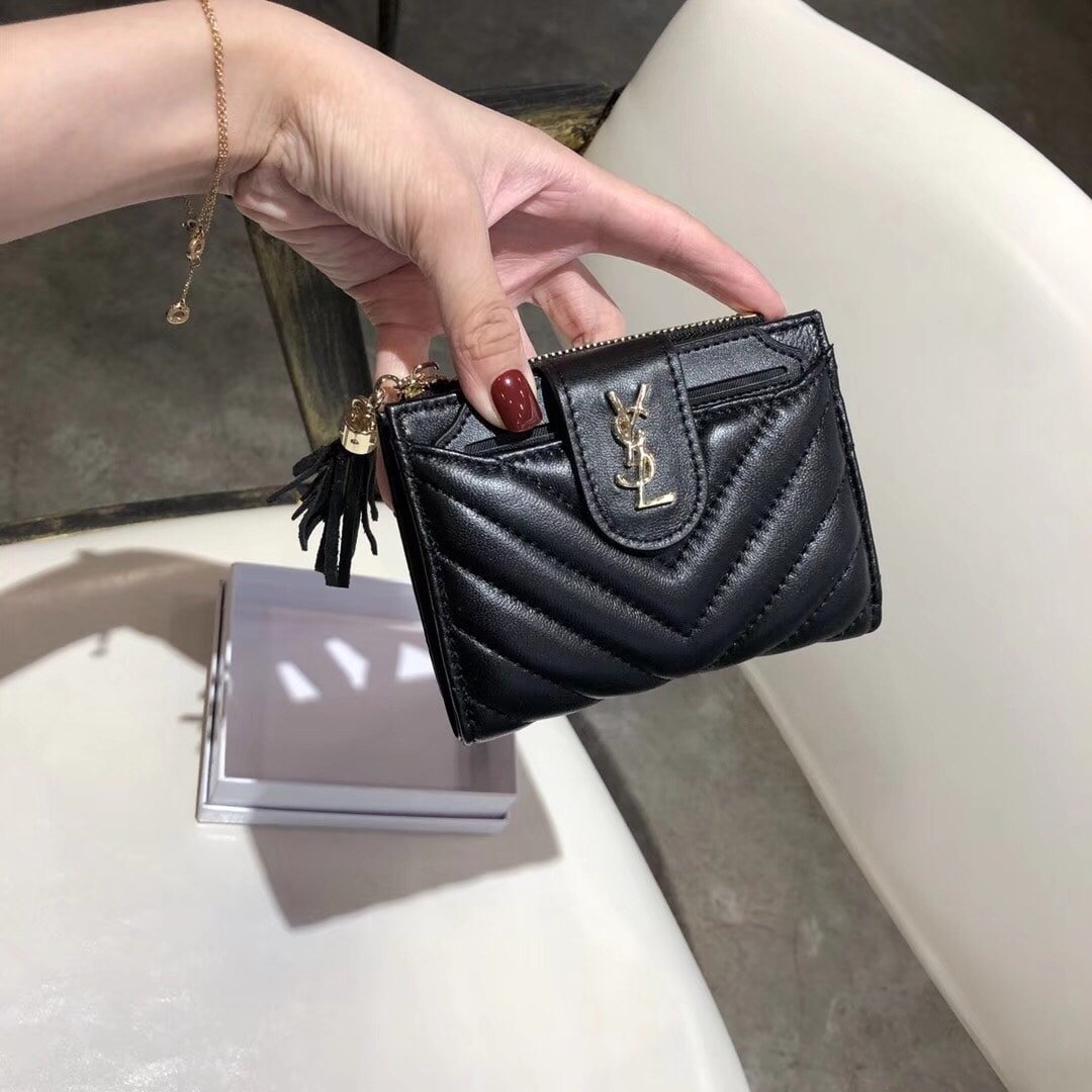 SAINT LAURENT HALF FOLD WALLET CARD HOLDER BLACK 12CM