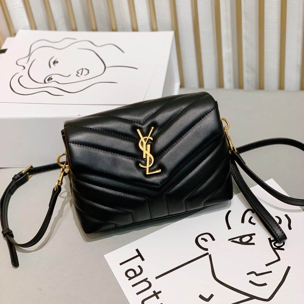 SAINT LAURENT LOULOU TOY STRAP BAG IN QUILTED LEATHER BLACK 20CM 678401DV7071000