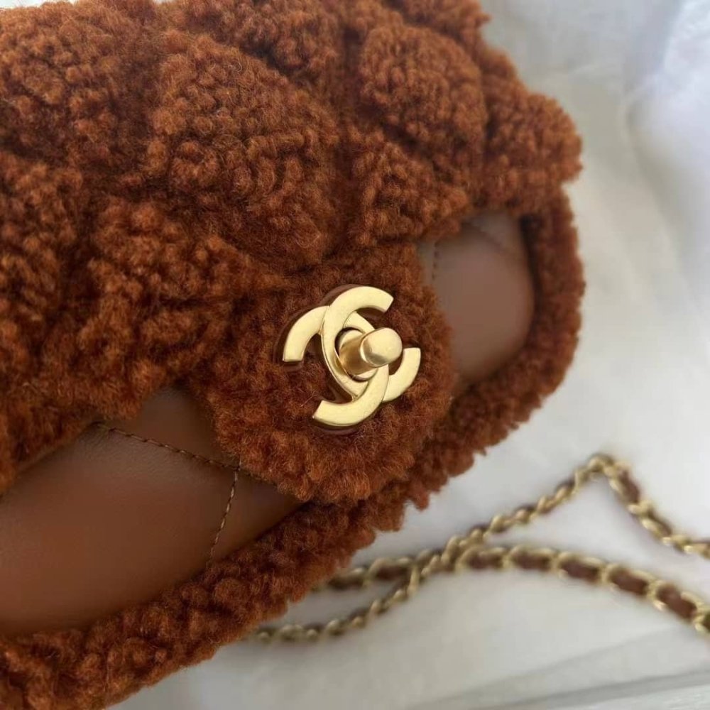 [SUPER VIP 1:1] CHANEL FLAP BAG TEDDY SHEARLING AND GOLD TONE METAL BROWN 19CM