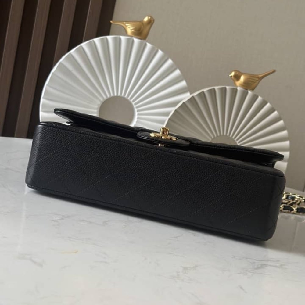 [SUPER VIP 1:1] CHANEL MEDIUM CLASSIC HANDBAG GRAINED AND GOLD TONE METAL BLACK 25CM A01113 Y01864 C3906