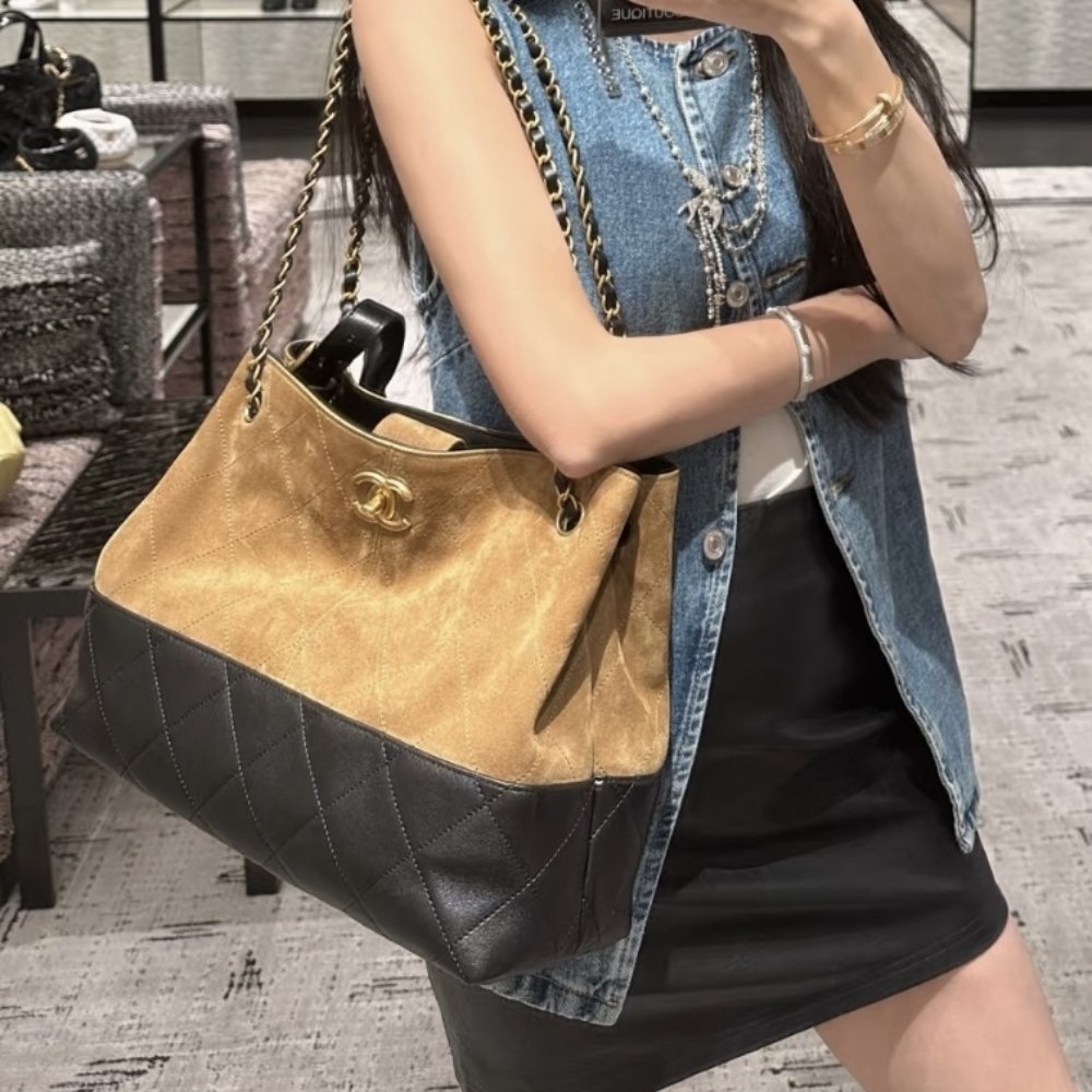 [SUPER VIP 1:1] CHANEL SHOPPING BAG GOLD TONE METAL BEIGE AND BLACK 36CM AS5657 B20827 U1536